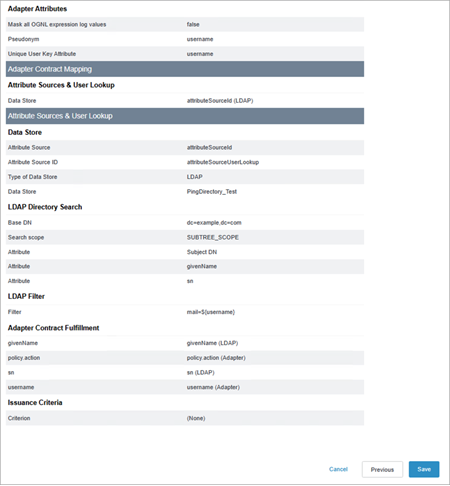 Almacén de datos de Ping: Un almacén de datos, como PingDirectory, configurado. Para obtener más información, consulte Configurar una conexión LDAP(El enlace se abre en una ventana nueva) en la documentación de PingIdentity.