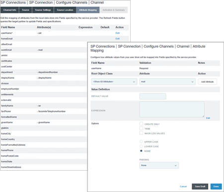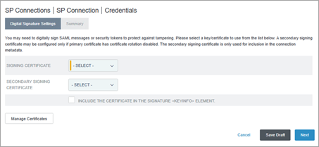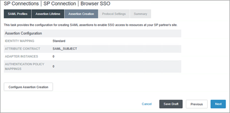 SAML en la configuración de protocolo: Configurar las opciones de protocolo para la federación SAML.