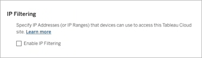 Questo argomento descrive come aggiungere e gestire i filtri IP in Tableau Cloud.