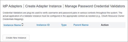 [パスワード認証資格情報バリデーターの管理] ページで、[新しいインスタンスの作成] ボタンをクリックします。