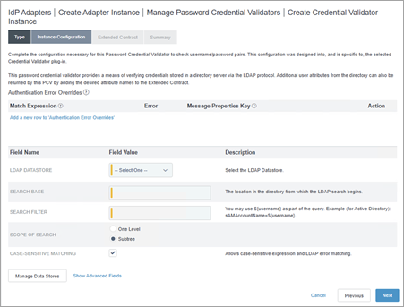 [アダプター インスタンスの作成] ページに戻り、[パスワード認証資格情報バリデーター インスタンス] セクションで、次の手順を実行します。