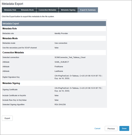 ステップ 5: PingFederate からメタデータをエクスポート