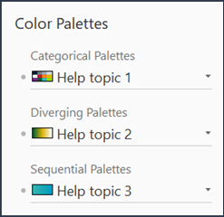 3. Scroll to Colour Palettes and expand the menu next to the colour palette type you’d like to add: Categorical, Diverging or Sequential.