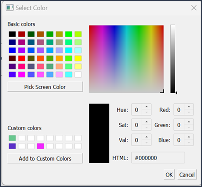 • Enter Red/Green/Blue (RBG) and Hue/Saturation/Value (HSV) values
