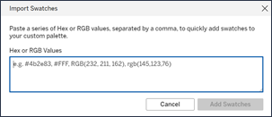 貼上多個十六進位代碼或 RGB 值(以逗號分隔),以一次新增多個樣本。