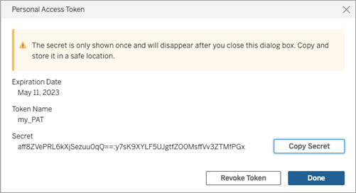 Note: Tableau Cloud Manager PATs can’t be used to sign in to the Tableau REST API, which is used to manage and change Tableau Cloud site resources.