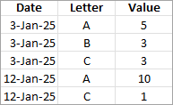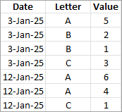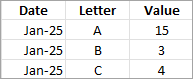 When you choose to aggregate the data, you can also select Roll up dates to a specified date level such as Year, Month, etc. The following examples show how the data will be extracted for each aggregation option you can choose.