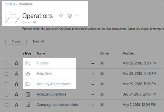 - You, as a site or server administrator, can create top-level projects for each of your distinct Tableau teams.