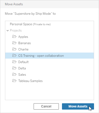 When you move a project and assets, permissions may be impacted. For more information, see Permissions.