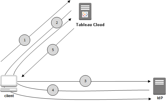 2. Tableau starts the authentication process by redirecting the client to the configured IdP.