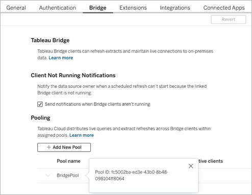 • If the Bridge client is new (you never signed in to Tableau Cloud), the client is assigned to the default pool.