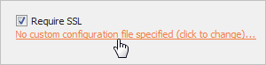For some compatible connections, linked text appears under the Require SSL checkbox. This indicates that you can specify an alternative certificate file to use, such as a self-signed certificate.