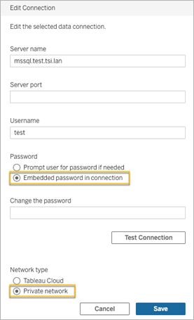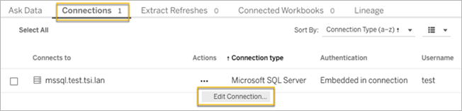 For more information about how to edit the connection type, see Change the connection type of a refresh to use Tableau Cloud.